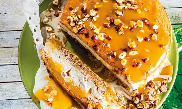 Sobremesa 60 min. 16 Bolo gelado com caramelo salgado Não sabe como preparar, Bolo gelado com caramelo salgado? Este bolo gelado feito em camadas, combina os sabores da avelã com o gelado de praliné e o caramelo salgado. Derreta-se com esta sobremesa gulosa! Ingredientes 200 g miolo de avelã + 50 g 180 g açúcar + 250 g 4 ovos L ½ c. café sal fino 30 g manteiga + 1 c. sopa (para untar a forma) 50 g farinha qb água 2 dl natas frescas 1 c. chá flor de sal 3 emb. gelado Momentos de Luxo Praliné Instruções 1. Triture 20 g de miolo de avelã com 180 g de açúcar. Mude a mistura para uma tigela, junte as gemas e bata cerca de 10 minutos até obter um creme. Reserve. 2. Bata as claras em castelo com o sal e reserve. 3. Pré-aqueça o forno a 170° C. Unte com a manteiga uma forma de mola com cerca de 23cm de diâmetro, forre o fundo com um disco de papel vegetal e volte a untar. 4. Misture a farinha com o preparado de ovos e avelã, incorpore delicadamente as claras batidas, verta a massa na forma e leve ao forno cerca de 35 minutos. 5. Coloque 250 g de açúcar numa frigideira anti-aderente, junte água até cobrir o açúcar e deixe ferver suavemente até obter um caramelo claro. 6. Aqueça as natas, sem deixar ferver. Retire a frigideira com o caramelo do lume e deite-o em fio, mexendo sempre, sobre as natas. Adicione a flor de sal e a manteiga e leve, novamente, ao lume até obter um preparado homogéneo. 7. Retire o bolo do forno, deixe arrefecer um pouco, descarte o aro e coloque-o sobre uma grade até arrefecer por completo. Coloque o gelado à temperatura ambiente para amolecer um pouco. 8. Corte o bolo ao meio e volte a colocar um disco na forma. Espalhe por cima o gelado, tape com o outro disco e leve ao congelador cerca de uma hora. 9. Na altura de servir, retire o aro, coloque o bolo no prato de servir e regue-o com o caramelo salgado. 10. Polvilhe com o restante miolo de avelã, grosseiramente picado, e sirva. Compartilhar artigo: 335