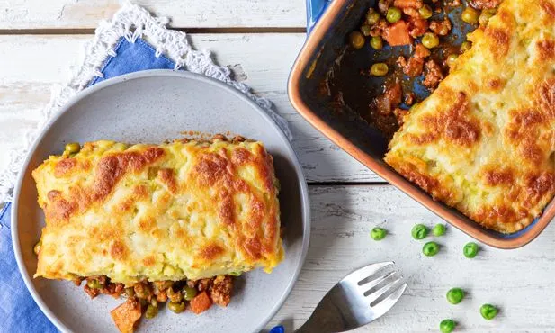 Com esta receita de empadão de vitela com puré de batata-doce, com ervilhas e cenoura, as crianças vão comer vegetais sem dar por isso. Uma opção saborosa e nutritiva, ideal para a família inteira.