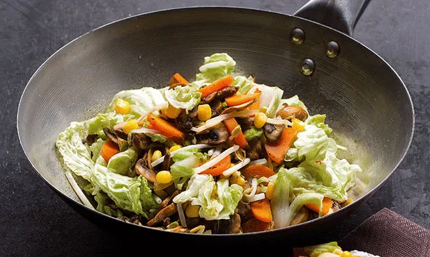 Experimente este salteado no wok, com cogumelos shitake, couve-chinesa e rebentos de feijão mungo. Pode facilmente transformar a receita num prato principal, acrescentando massa ou arroz cozidos perto do final.